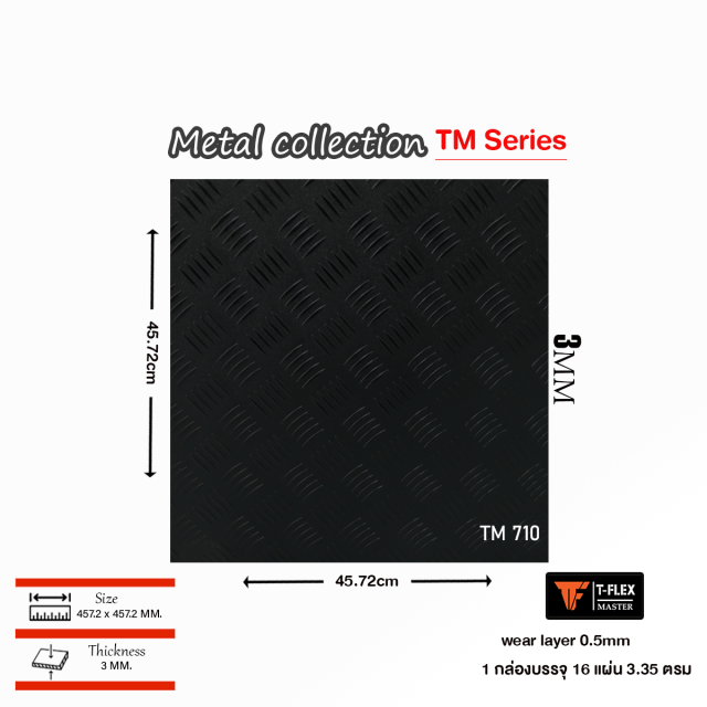 กระเบื้องยาง จาก T-Flex Master ลายเหล็ก / ที่แรกที่นำเข้าวัสดุยางแบบ 3มิล สี Metal wear layer 0.5 แบบจุกๆ เอาใจสายโรงงานและผู้ประกอบการที่มีโรงงานขนาดเล็กและใหญ่ เนื้องยางวัสดุที่ความทนทานและพื้นผิวพิเศษที่กันลื่นในแบบลวดลายต่างๆ ช่วยเพิ่มแรง Resistance ของการทำงานและการเคลื่อนไหวภายในโรงงานเป็นอย่างมาก.